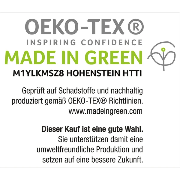 - MADE IN GREEN certificato OEKO TEX®: M1YLKMSZ8 HOHENSTEIN HTTI