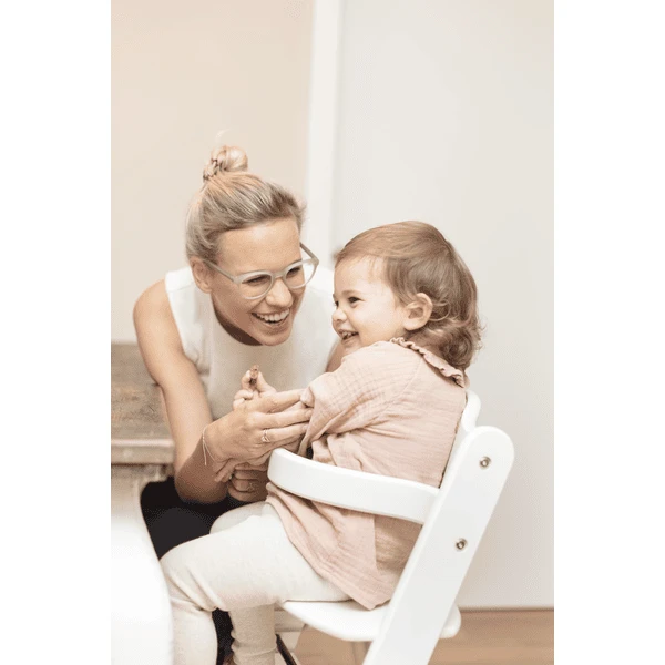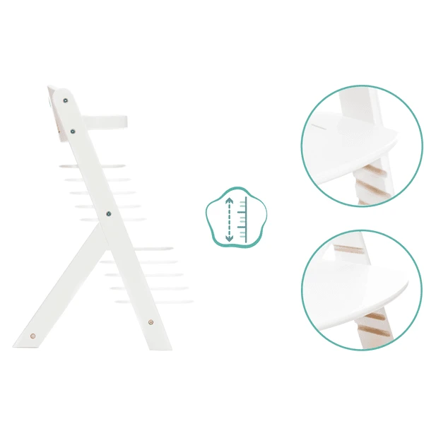 In legno di faggio Regolabile in altezza in 13 livelli, inclusa cintura e bracciolo anterriore removibili. Capacità max 80 kg