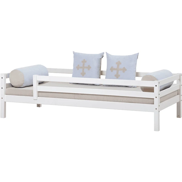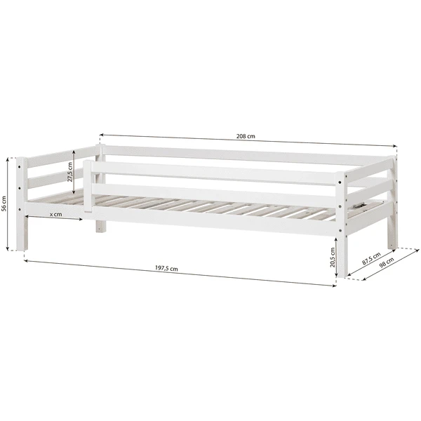 La protezione anticaduta può anche essere rimossa se necessario, rendendo il letto perfetto come divano o letto da giorno.