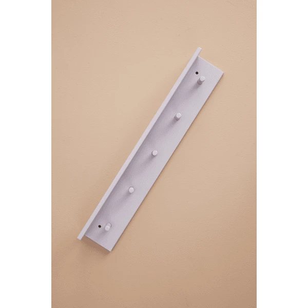 Scaffale e tavola per ganci in uno. I 5 ganci sono distribuiti uniformemente e quindi diversi scaffali possono essere posizionati uno accanto all’altro. Disponibile in 4 colori diversi.
