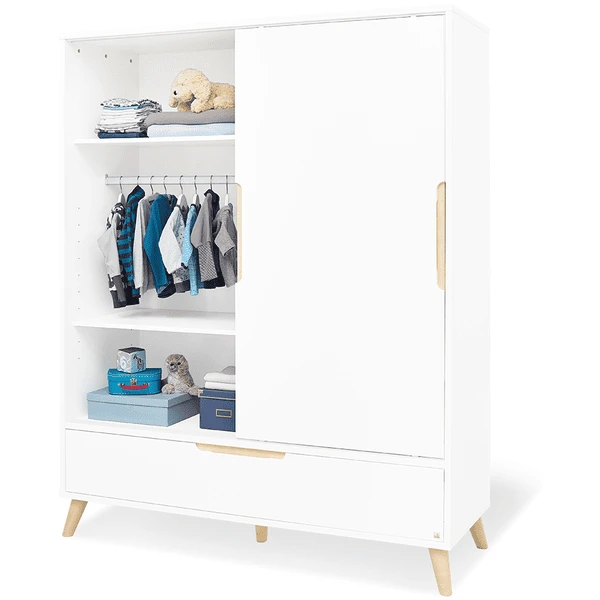 Mobile ideale per la camera dei bambini. I piedini arrotondati e angolati e le belle maniglie in acero massello incassate dell’armadio, fanno dell’armadio ad ante scorrevoli un vero e proprio colpo d’occhio, non solo nella baby room.