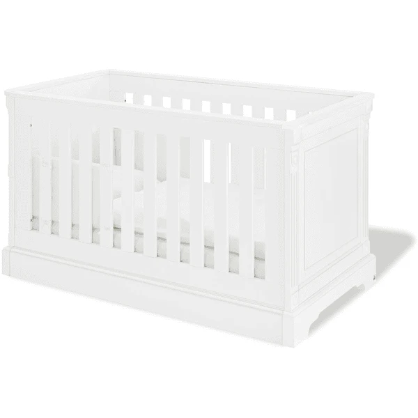 colore: bianco Materiale: MDF Uni, laccato biancoMisure: Ampiezza x Lunghezza x Altezza 81 x 151 x 88 cm Superficie: larghezza x langhezza 70 x 140 cm3 sbarre removibiliRete regolabile in 3 altezzeTrasformabile in letto juniorInclusa reteInclusi pannelli lateraliMobile fasciatoioColore : biancoMateriale: