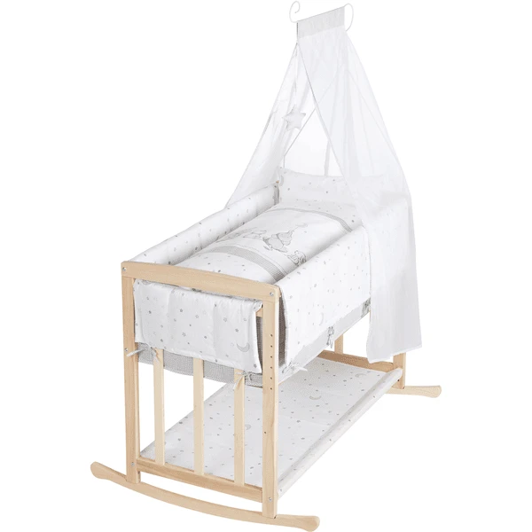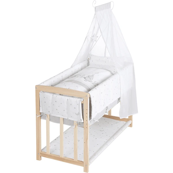 La culla Roba “Magia stellare” con barre piatte è fatta di legno massiccio (faggio).