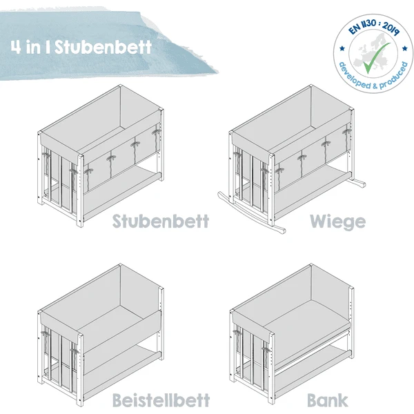 La culla roba 4 in 1 è adatta dalla nascita e cresce con il bambino fino a
