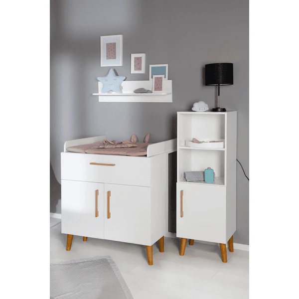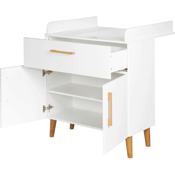 Il fasciatoio offre molto spazio per riporre gli utensili per il cambio. Così hai tutto a portata di mano per la cura del bambino. Con altri mobili per bambini della serie “Mick”, puoi creare un’elegante stanza per bambini o per neonati. Il roba baby changer con fasciatoio è un vero tuttofare e vi servirà bene per gli anni a venire. Il fasciatoio stabile può essere usato come un sedile rialzato per il vostro bambino dell’asilo, in modo che possiate facilmente aiutarlo a vestirsi in una comoda posizione in piedi. In seguito, il fasciatoio può essere usato come una cassettiera in soggiorno o nella stanza dei bambini.