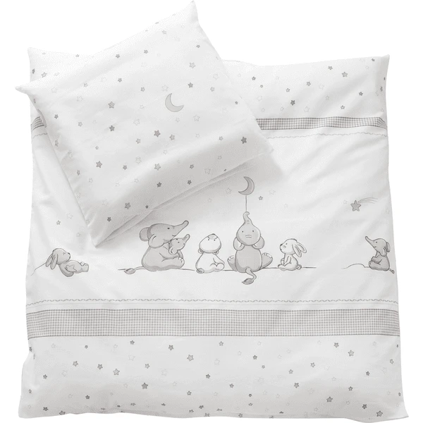 La biancheria è double face, comodissima per la cameretta. La pregiata biancheria da letto a culla in due pezzi è composta da un cuscino di 40 x 35 cm e da un copripiumino di 80 x 80 cm ed è realizzata in cotone traspirante e non irritante per la pelle.