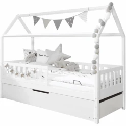 Questo letto è più di un posto comodo per far dormire il tuo bambino! La casa letto Dream House con la sua costruzione del tetto per il design individuale diventerà rapidamente il punto focale della camera del vostro bambino.